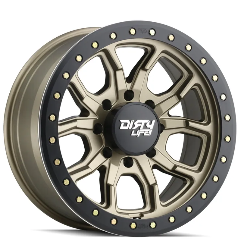 17″ Dirty Life Wheels DT-1 9303 Satin Gold with Simulated Beadlock Ring Off-Road Rims