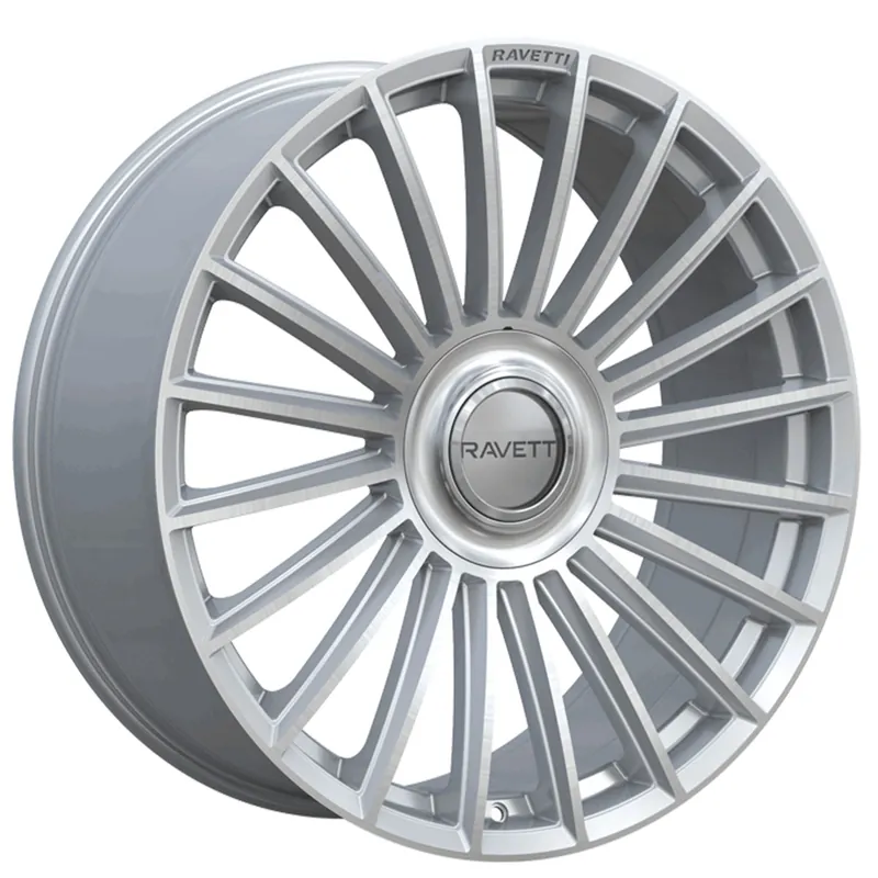 22″ Ravetti Wheels M17 Silver Brushed Floating Cap Rims
