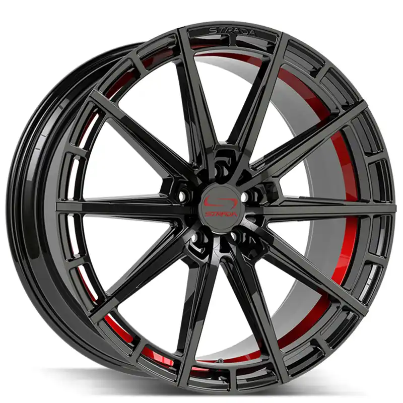 22″ Strada Wheels Palo Gloss Black with Red Ring Flow Formed Rims
