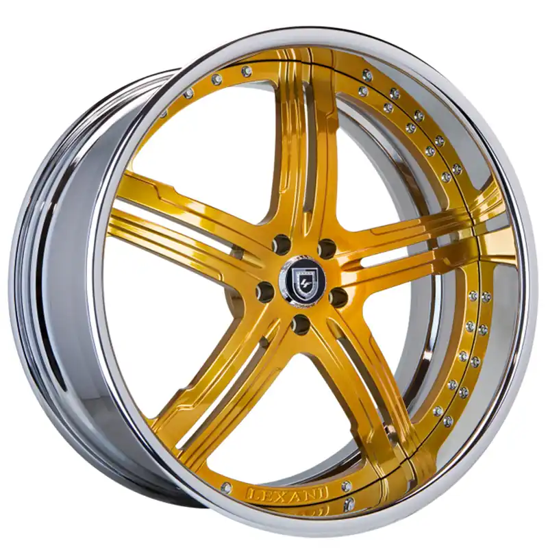 26″ Lexani Forged Wheels LF-716 Brushed Gold with Chrome Lip Rims