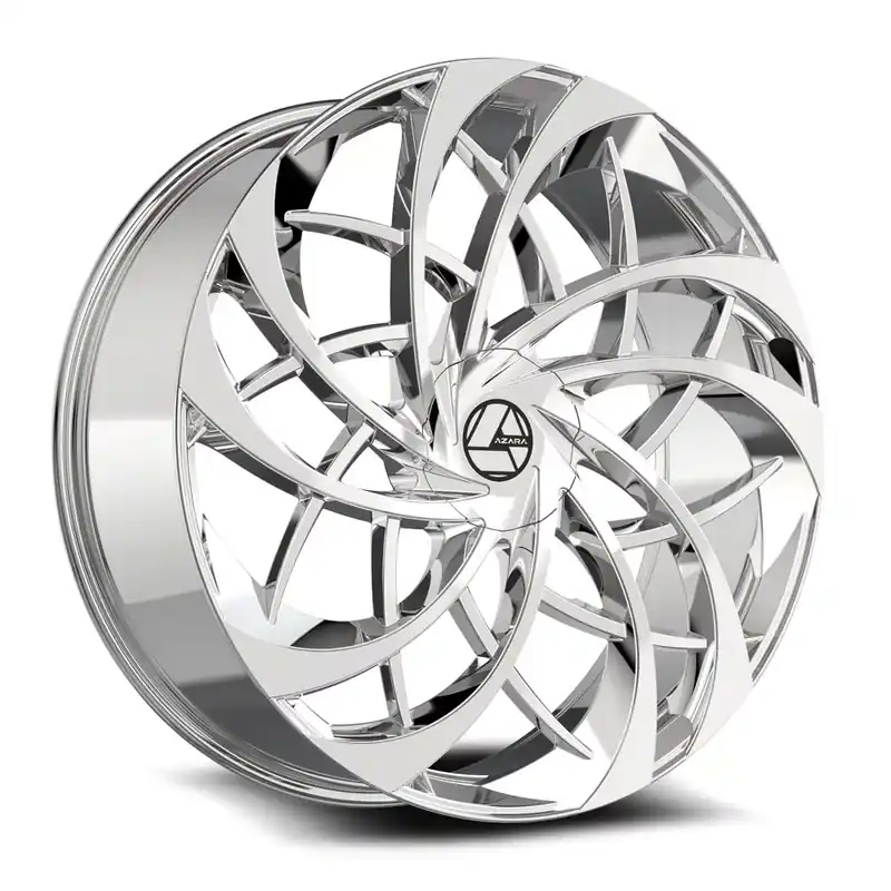 This 24×9 Azara AZA-540 Nano Chrome Wheel; Rear Only; 24×9; 15mm Offset is completed in a high-quality chrome finish that will make everyone take notice. Using a 3-stage process involving copper, nickel and chrome, you get a sensational bright wheel that can withstand the rigors of daily driving.