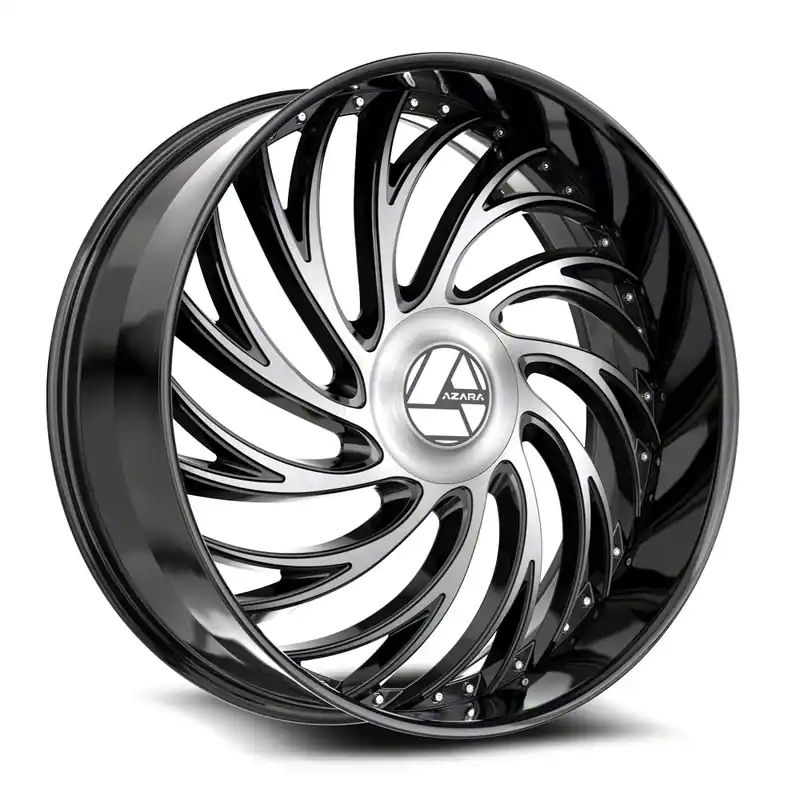 Azara AZX-101 Gloss Black and Machined Wheel; Rear Only; 22×9.5; 15mm Offset is a visually striking choice, offering a combination of rugged durability and modern styling. Its design complements off-road and sporty vehicles alike, enhancing the overall aesthetic appeal.
