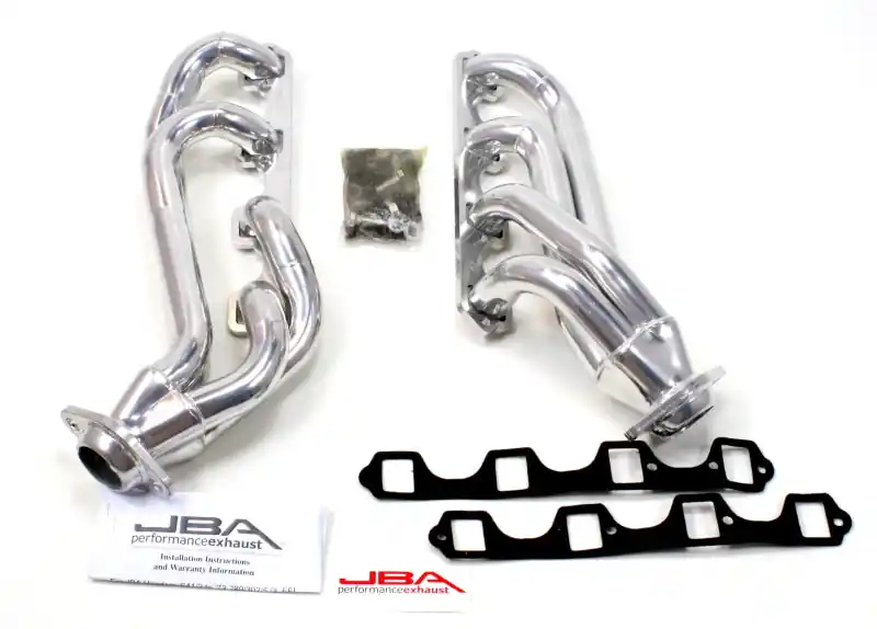 JBA shorty headers are one of the foremost performance upgrades you can bestow upon your beloved car, truck, or SUV. JBA Headers are significantly less restrictive than stock manifolds and dramatically increase the power and efficiency of your engine. Each header is constructed from durable stainless steel to endure the abuse of racing, towing, and daily driving – built to withstand it all. JBA’s proprietary Firecone collector design uses race proven technology for producing maximum power and torque gains where you drive most. Each system includes factory style emission connections and high-quality hardware for a professional no-leak installation.
