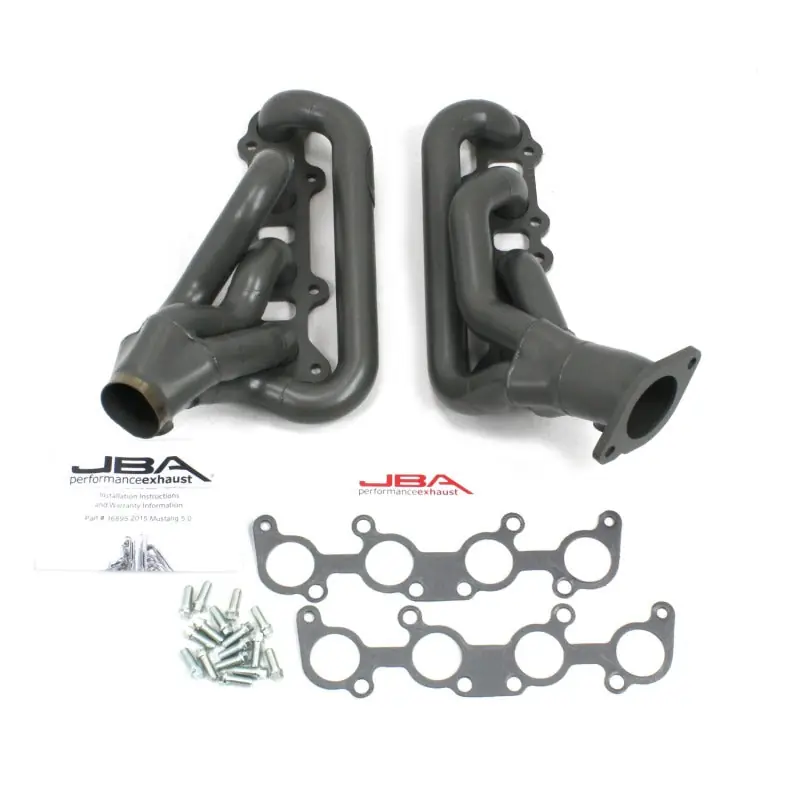 JBA shorty headers are one of the foremost performance upgrades you can bestow upon your beloved car, truck, or SUV. JBA Headers are significantly less restrictive than stock manifolds and dramatically increase the power and efficiency of your engine. Each header is constructed from durable stainless steel to endure the abuse of racing, towing, and daily driving – built to withstand it all. JBA’s proprietary Firecone collector design uses race proven technology for producing maximum power and torque gains where you drive most. Each system includes factory style emission connections and high-quality hardware for a professional no-leak installation.