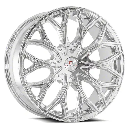 This 22×9.5 Cavallo CLV-37 Nano Chrome Wheel; Rear Only; 22×9.5; 15mm Offset is completed in a high-quality chrome finish that will make everyone take notice. Using a 3-stage process involving copper, nickel and chrome, you get a sensational bright wheel that can withstand the rigors of daily driving.