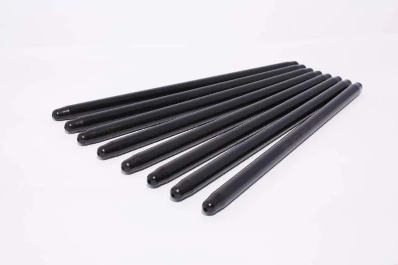 The Pushrod is one of the most important pieces of the valve train, but all too often it’s taken for granted. pushrods not only have to be strong enough to not fail, bend or burn up at the ends, they must also match the frequency of all the rest of the pa parts in the valve train, as well as the rpm at which the engine will be run. Today’s all-out race engines demand the highest quality components at every step, and COMP Cams Hi-Tech pushrods fill that requirement. Hi-Techâ„¢ pushrods feature a one-piece design from .080″ wall, seamless chromemoly tubing that ensures the ultimate in strength and durability. Ends are precision formed, yielding added thickness and strength in the critical tip area, while maintaining constant wall thickness and concentricity. The pushrods are then heat-treated for maximum strength to ensure compatibility with guide plates. They are OD ground for consistency and black-oxide finished with length and part number laser etched on the OD for ease of identification.