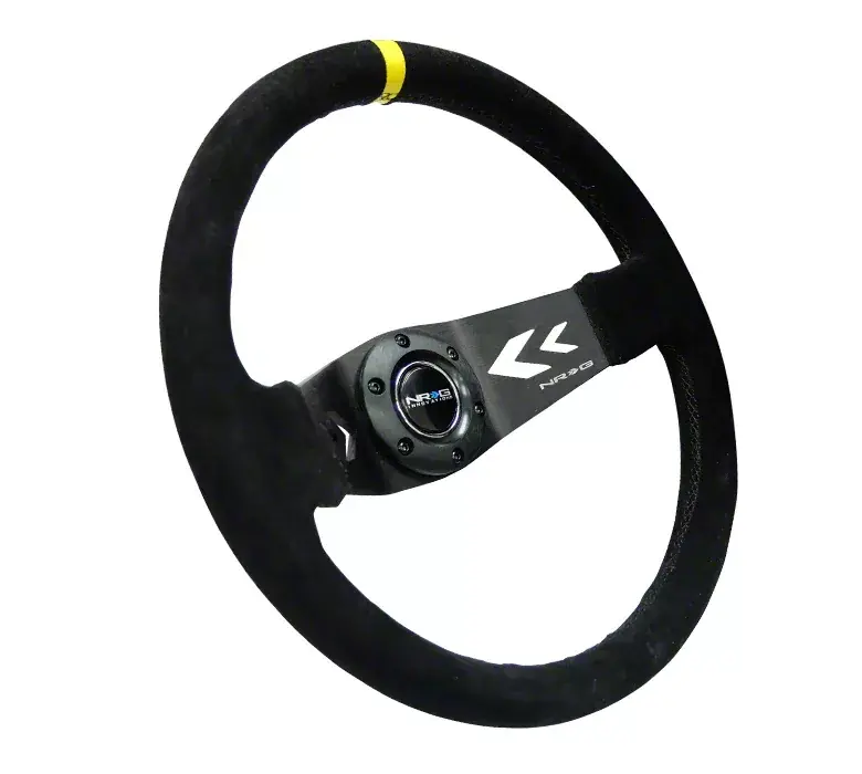 Hot Picks NRG Innovations 350mm Two Spoke Steering Wheel; Suede Leather with Yellow Center Mark