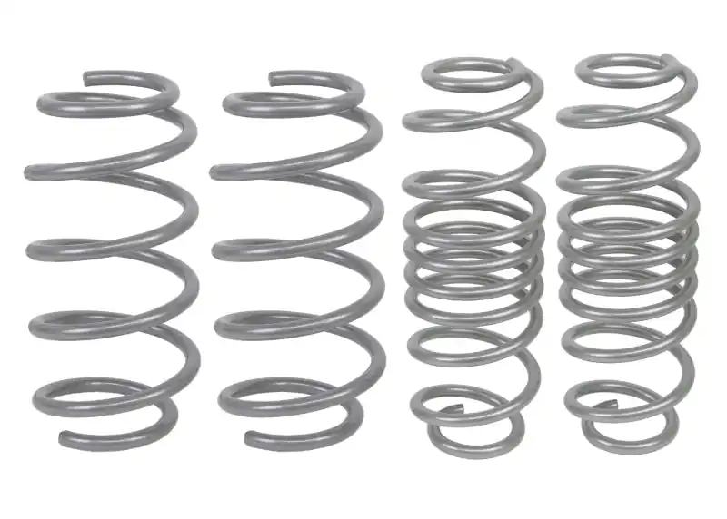 Whiteline Springs deliver improved vehicle performance whilst maintaining safety and ride quality characteristics. This kit contains 2.6kg/mm (145lb/in) front rated springs that provide a 30mm drop while the 2.5kg/mm (140lb/in) rated rears deliver a desirable 30mm to the vehicle. By lowering the vehicles centre of grav