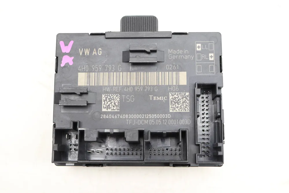 This genuine Audi DOOR / WINDOW CONTROL MODULE (OEM Part Number 4H0959793G) is essential for managing the operation of your vehicle’s front left window and door locking mechanism. Installed in models like the 2018 Audi A8 Quattro and S8, this module ensures seamless functionality by controlling window movement and enhancing door security. Over time, wear or electronic malfunction can lead to non-functioning windows and locks, making this part critical for restoring optimal performance. Compatible with various Audi models from 2011 to 2018, including the A8 and S8, this factory-original part guarantees reliable operation for both gas and diesel engines.