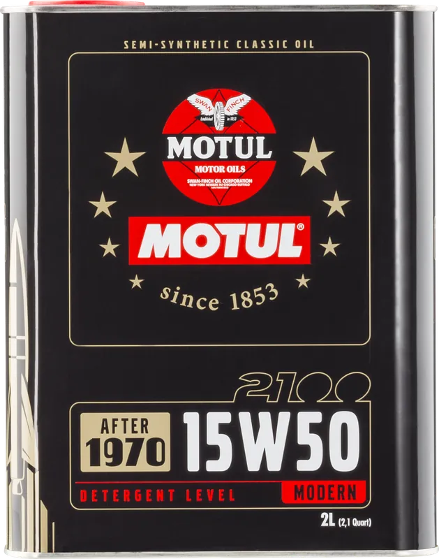 Semi-Synthetic engine lubricant specially developed for naturally aspirated and turbocharged original engines built after 1970. This production is an updated version of the 1966’s 2100 Motul engine oil which was the first semi-synthetic lubricant in the automotive market. It is formulated with modern technology detergent level and meets recent standards API SH / CF. It offers improved cold viscosity in order to reduce wear during engine start. Lubricant reinforced with a synthetic base allowing stable viscosity for a continuous engine oil pressure