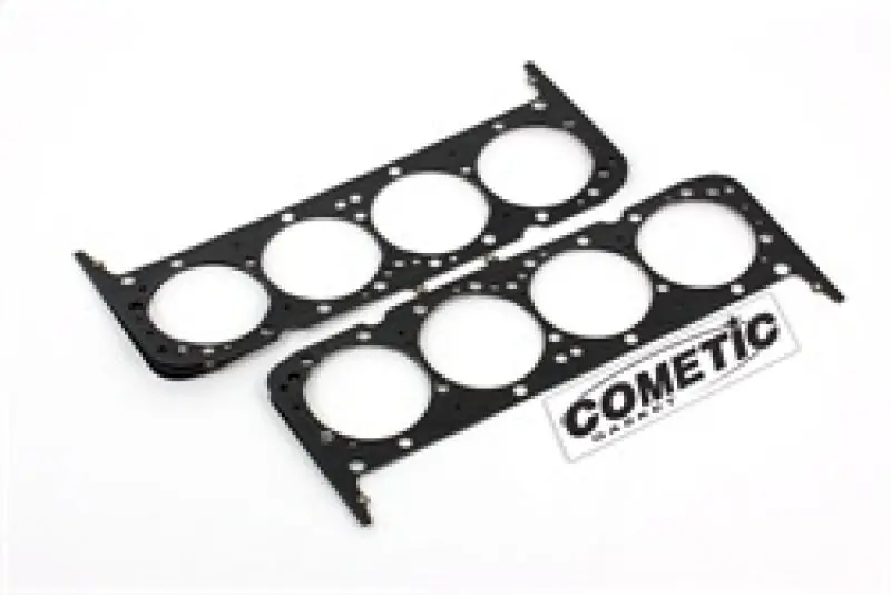 Comprised of multiple embossed layers of stainless steel with the outer layers utilizing a Viton rubber coating. Compressed operating thickness is 0.040″. Cometic MLS (Multi-Layer Steel) Head Gaskets provide maximum sealing performance for todays high output engines and require no sealants. MLS gaskets are ideal for both aluminum heads to aluminum blocks and aluminum heads to cast iron blocks. They can withstand the shearing force created by the two materials. MLS gaskets have increased strength because they are comprised of multiple layers of stainless steel; which also creates the ability to rebound and resist corrosion. The outer layers are embossed and coated on both sides with Viton (a flour elastomer rubber based material that is heat resistant to 250 C/ 482 F). Viton is designed to meet the demands of a variety of harsh sealing environments, load conditions, and surface finishes. The center or shim layer is uncoated stainless steel, which can be varied to accommodate multiple thickness requirements.