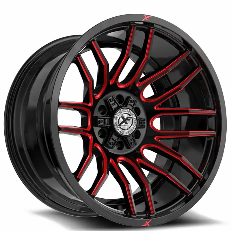 18″ XF Off-Road Wheels XF-232 Gloss Black with Red Milled Rims